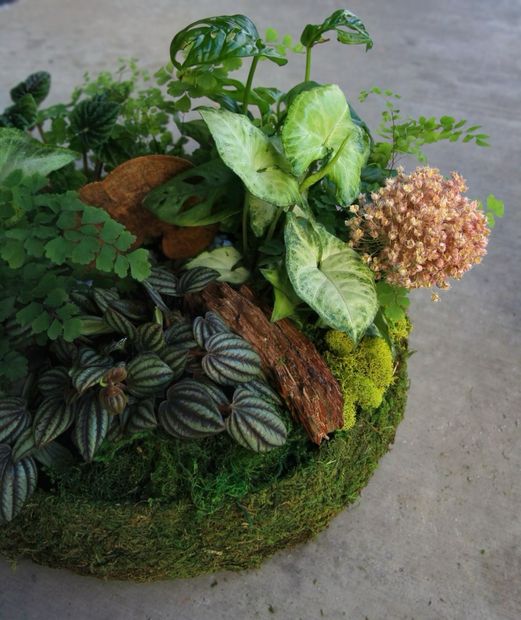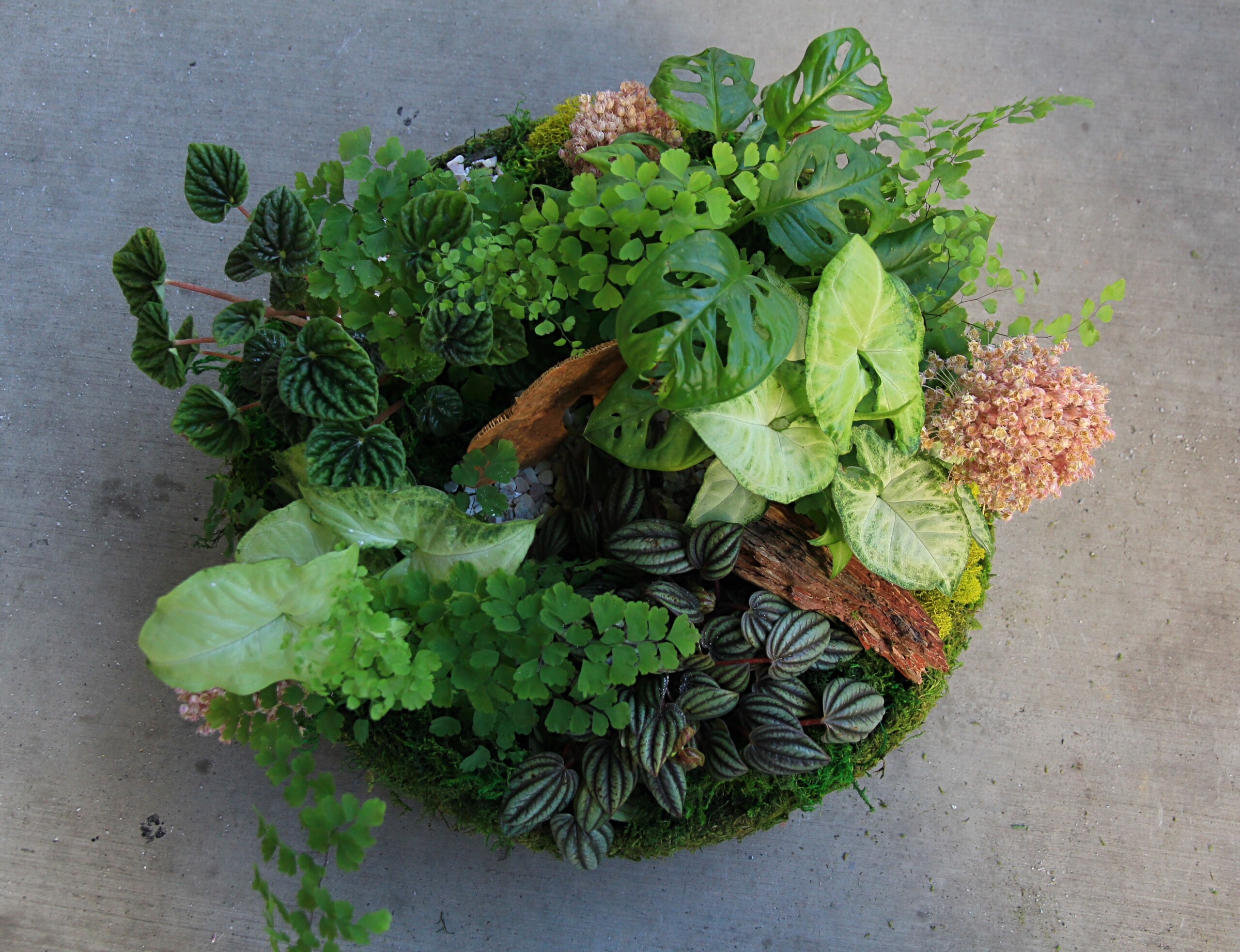 Image shown is a Kitchen size planter in a Designer’s choice container with Moss. Plant selection and variety will change based on availability.